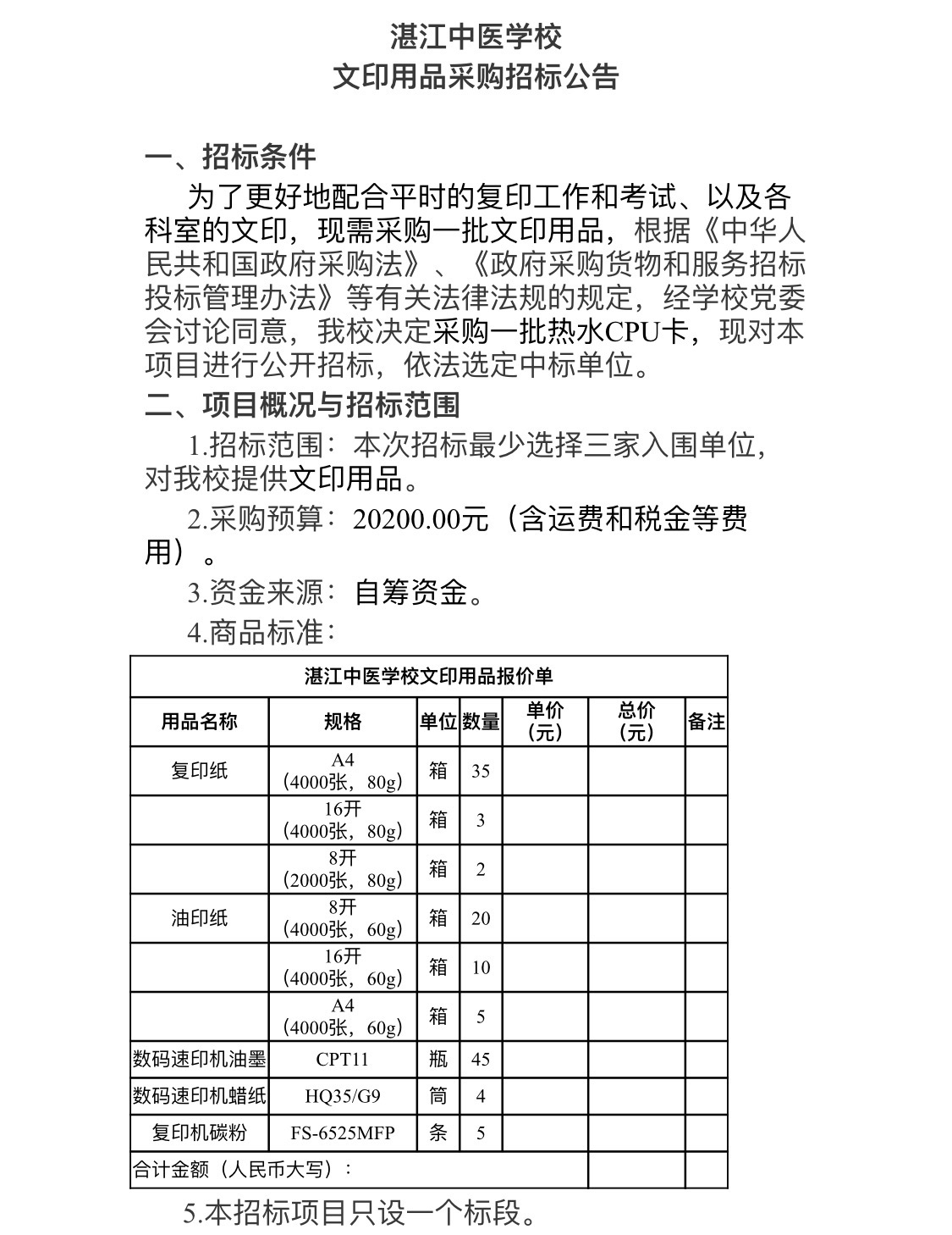 湛江中医学校节水型单位申报资料编写和水平衡测试服务招标公告